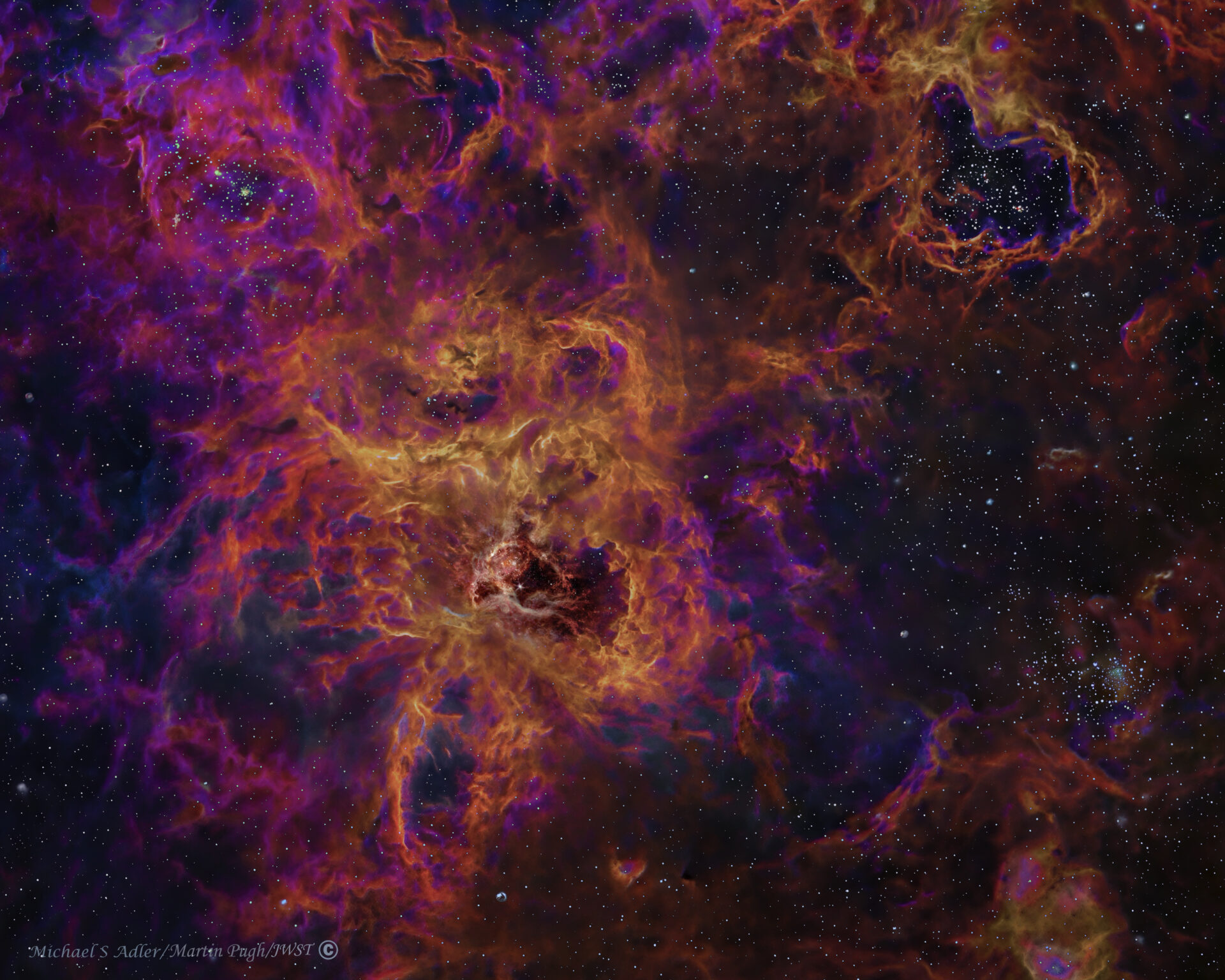 Processing: MaxIm DL for stacking and stretching, Photoshop CC2025 for forming the HSO color image and final processing, BlurX for deconvolution, Topaz Giga Px for 2x scaling, The very center of the nebula has the JWST image which I did from the raw data.